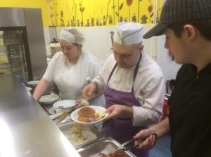 Ce matin, à 8h30, les 5e étaient conviés à un petit déjeuner anglais avec une petite touche américaine. Au menu, des œufs brouillés (scrambled eggs), du bacon, des champignons (mushrooms), des haricots en sauce (baked beans), des toasts avec de la marmelade ou du beurre, des pancakes au sirop d’érable (maple syrup) et comme boissons, …